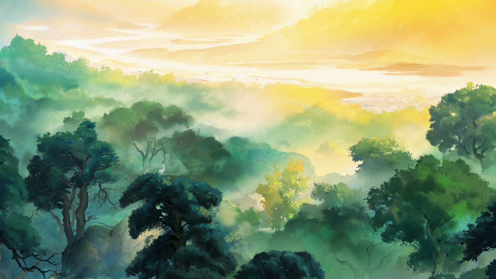 列车穿梭森林风景护眼电脑壁纸免费下载