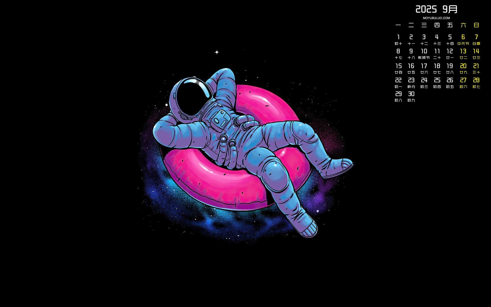 山星空风景2025年8月高清全屏日历电脑壁纸免费下载