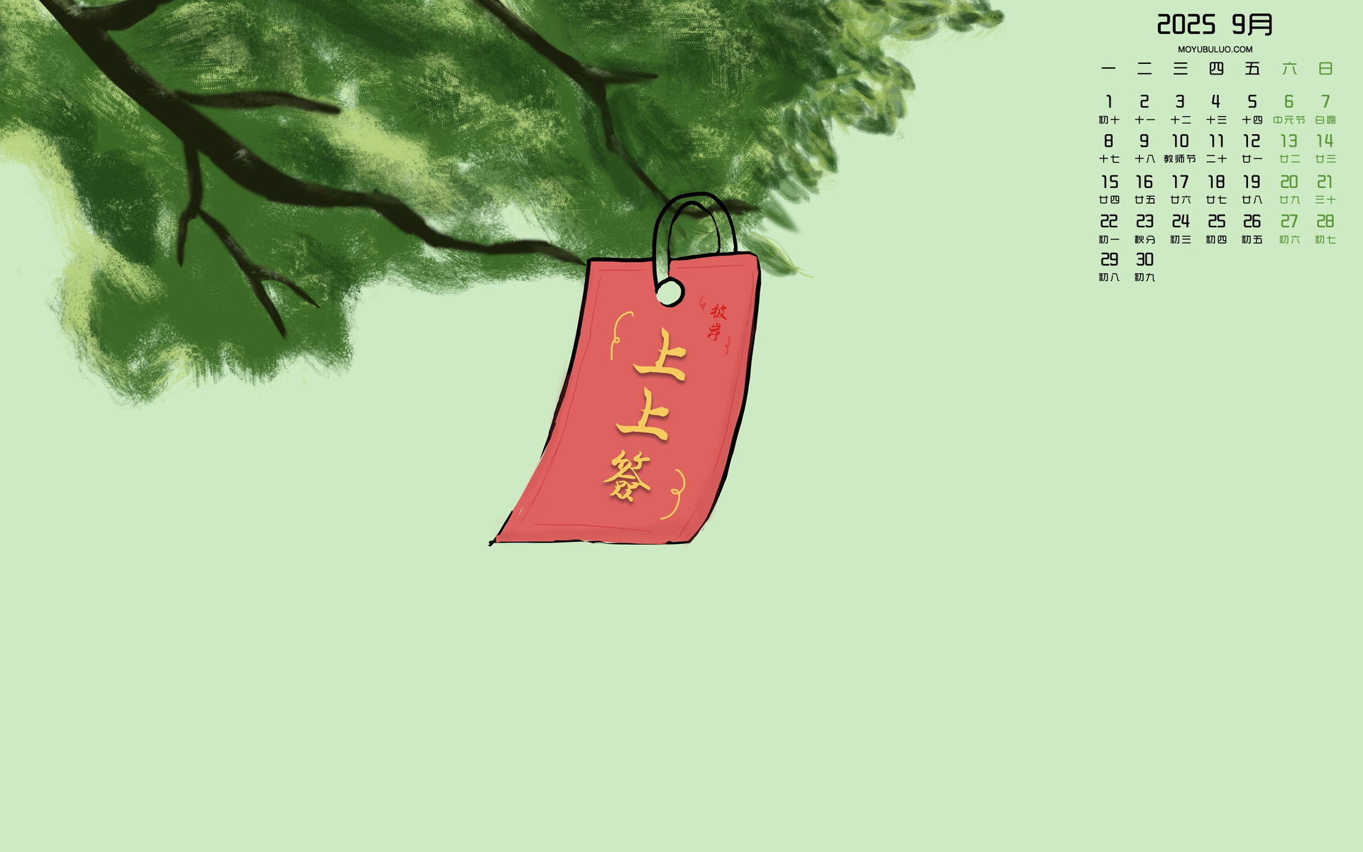 绿叶2025年5月高清全屏日历免费电脑壁纸下载