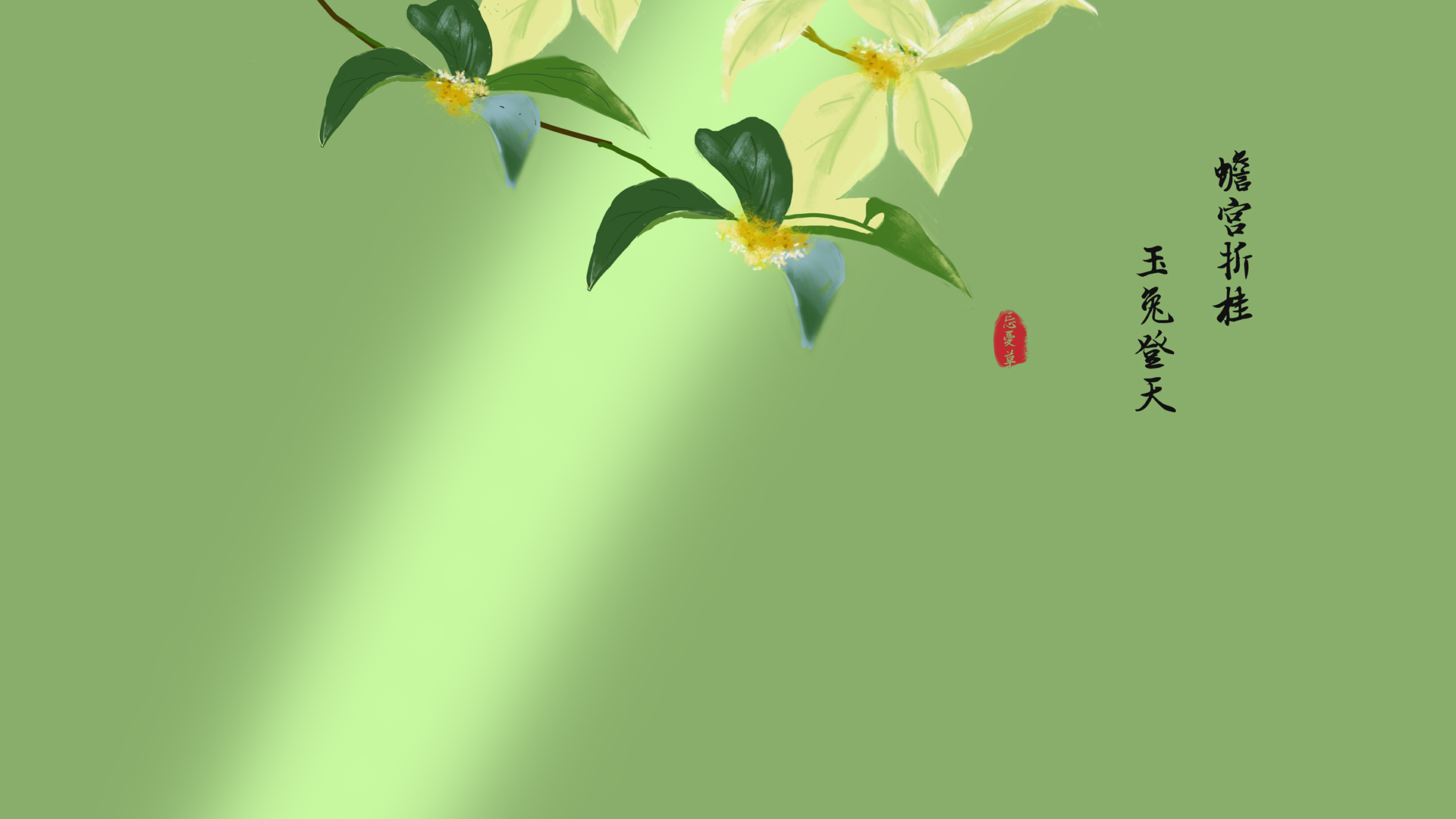 蟾宫折桂,玉兔登天 桂花 忘忧草 原创手绘厚涂壁纸
