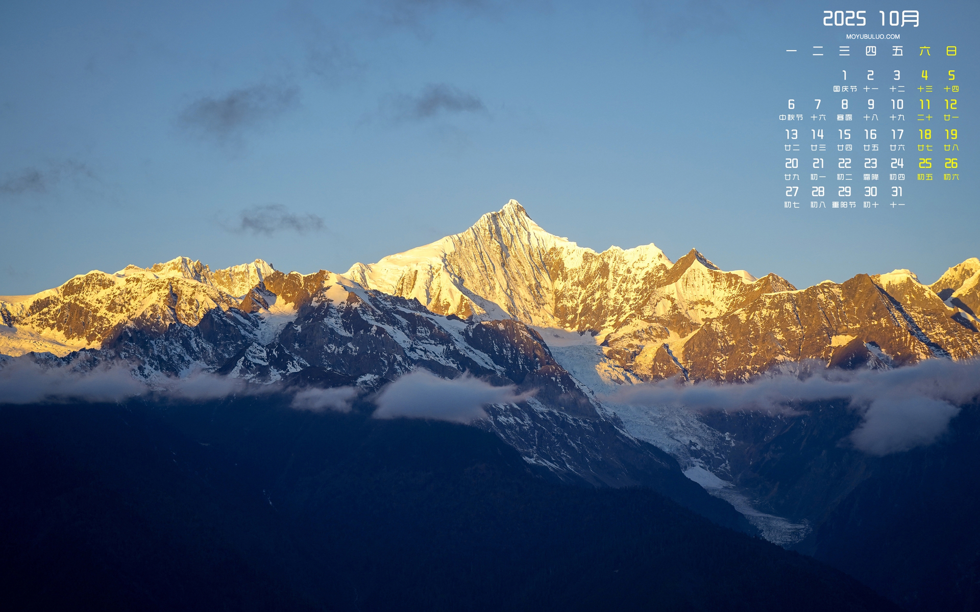 山顶云雾风景2025年5月桌面日历壁纸高清全屏