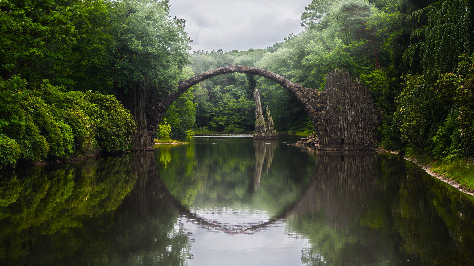 森林河流石拱桥山水倒影自然风景免费电脑壁纸下载