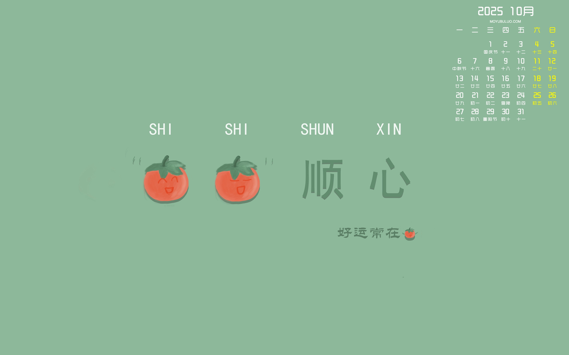 2025年10月森林河流自然风景护眼日历免费电脑壁纸下载