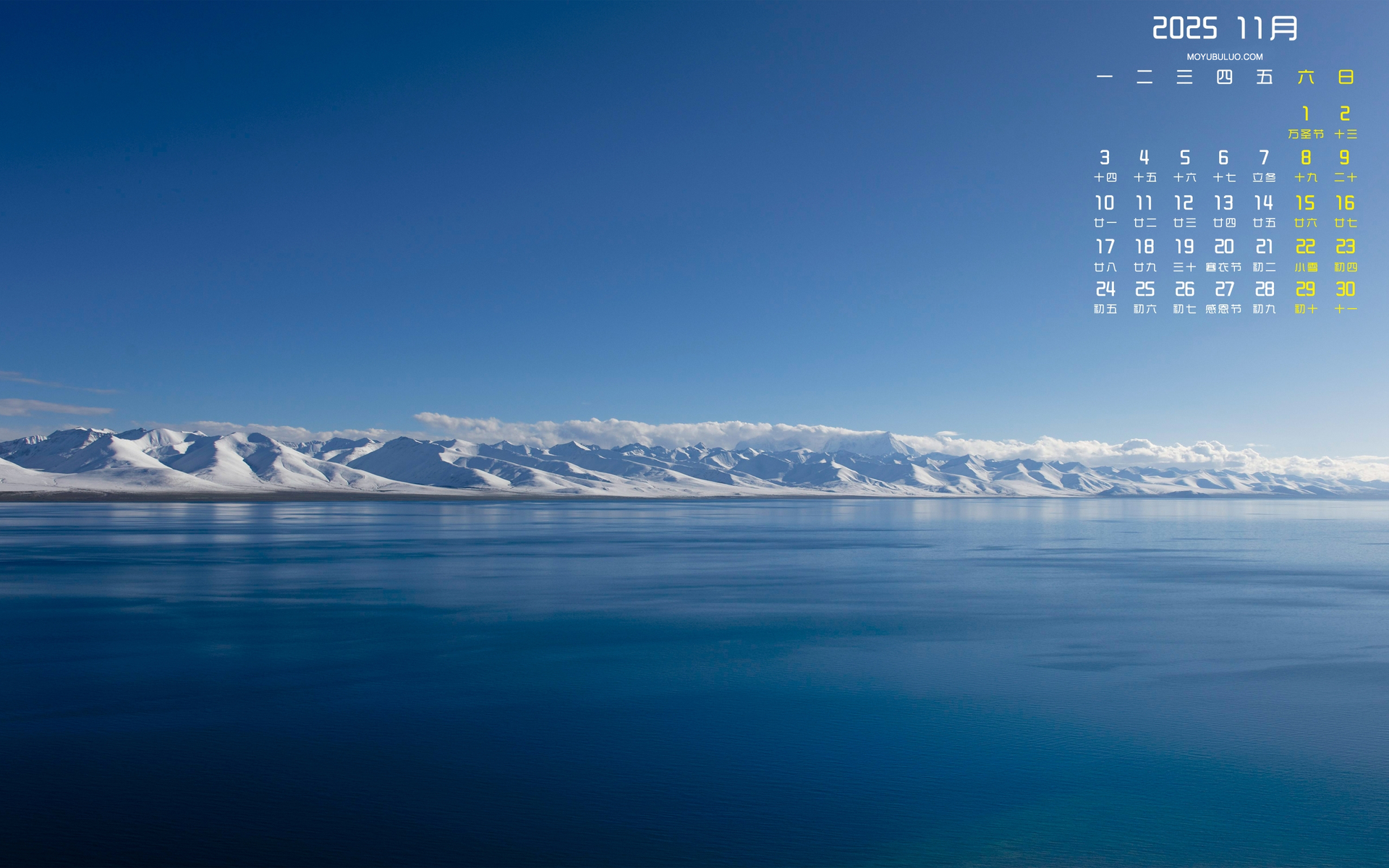 蓝色水面2024年8月日历桌面壁纸高清风景