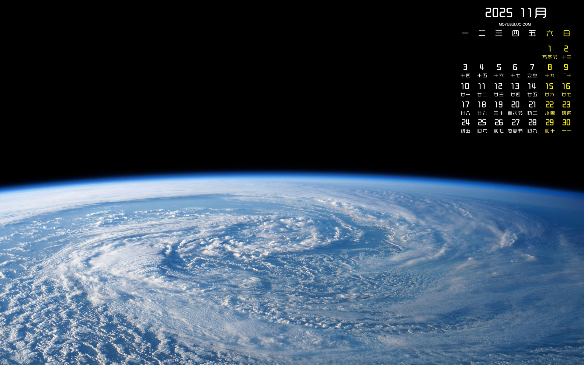 蓝色海洋风景2025年11月日历桌面壁纸高清