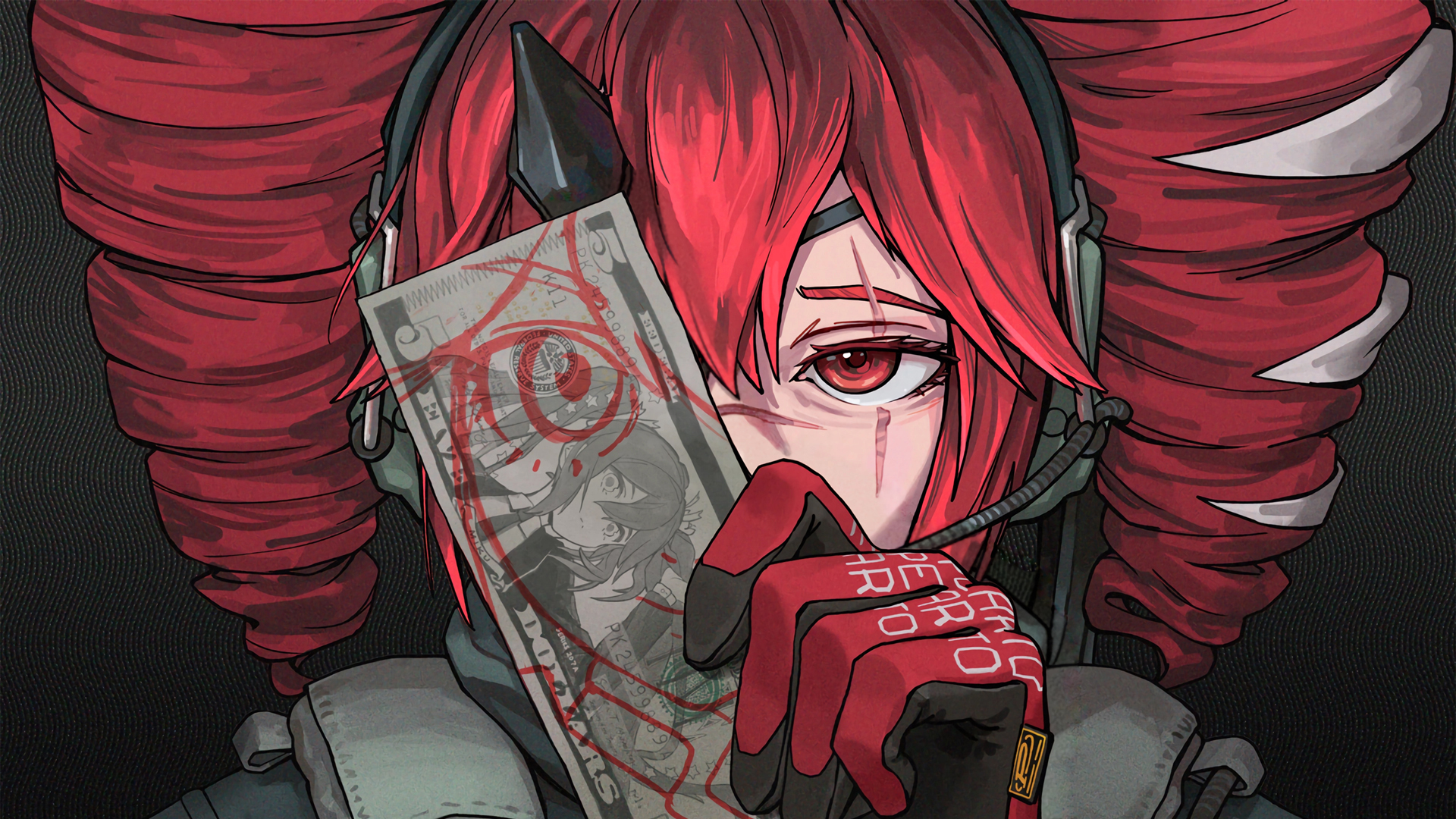 红色诡异发型个性女孩动漫免费电脑壁纸下载