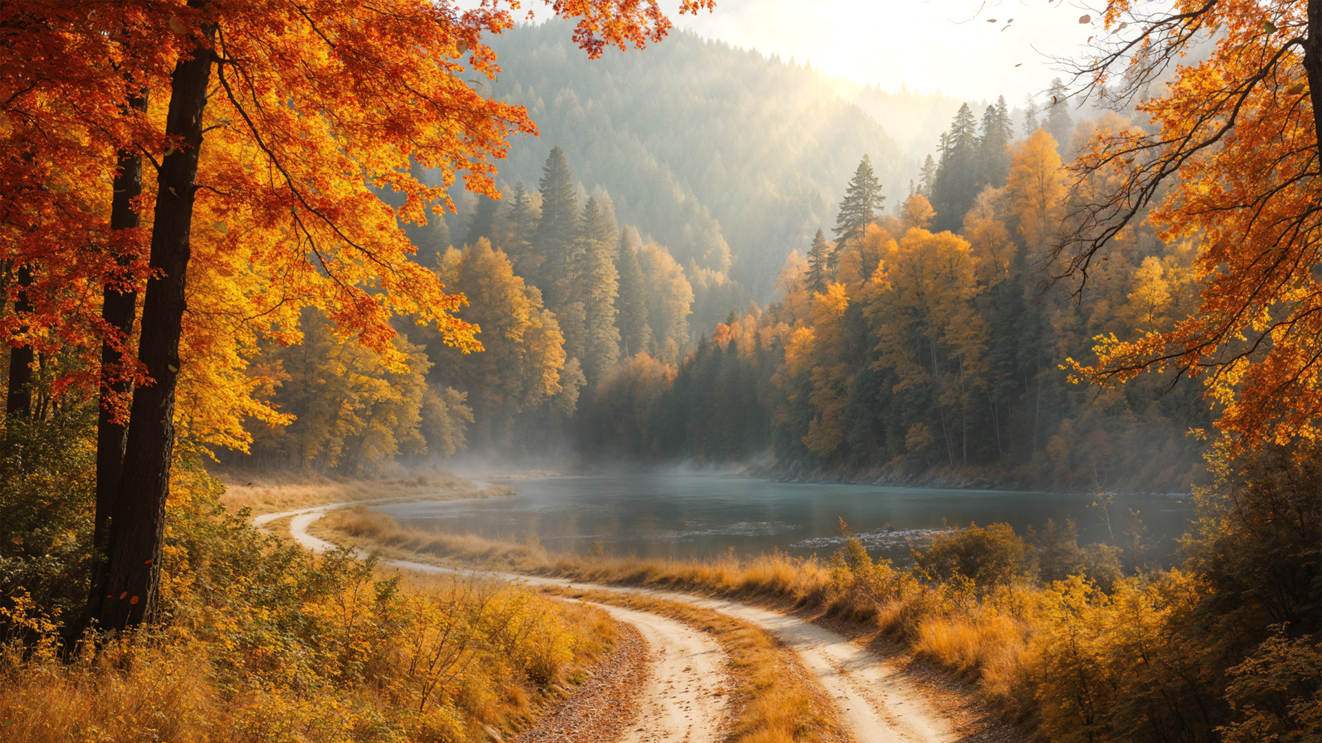 秋天,森林,公园,树木,树叶,路,自然风景壁纸