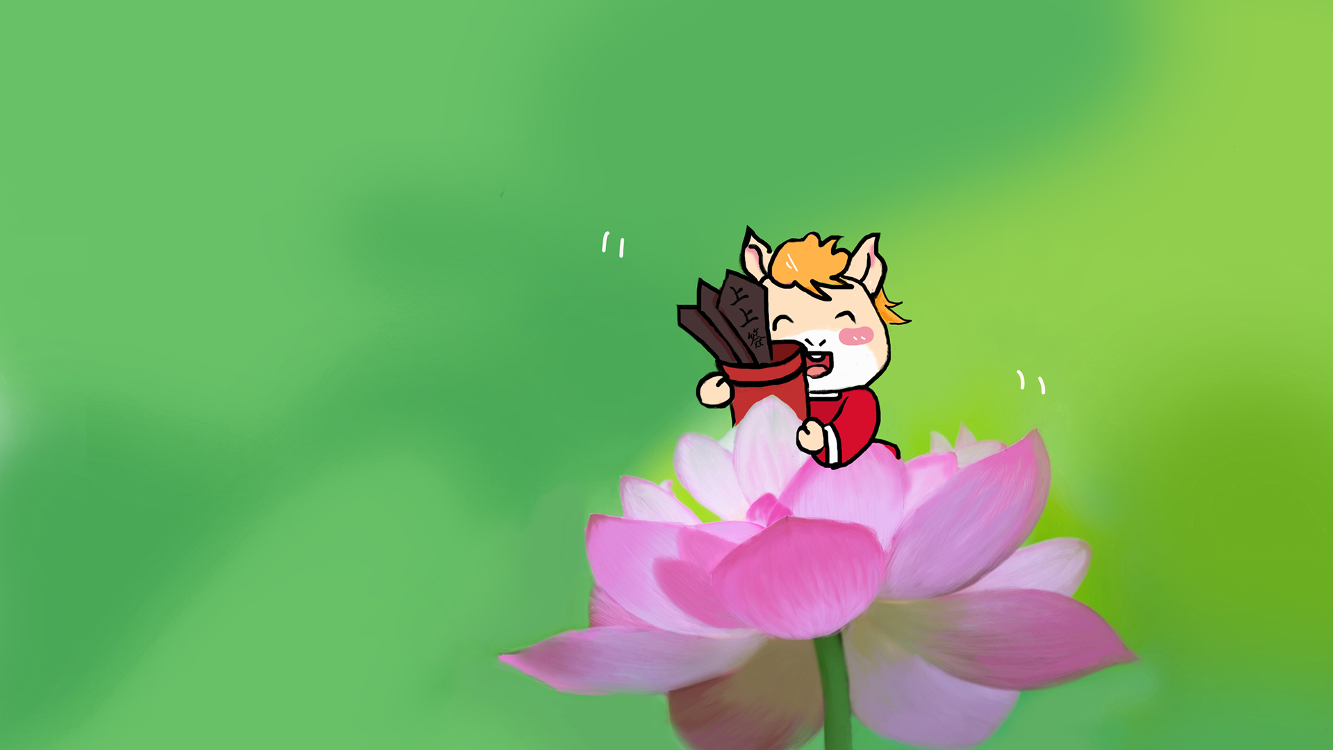 墨鱼部落格原创2026马年荷花手绘,马上上签高清可爱电脑壁纸免费下载