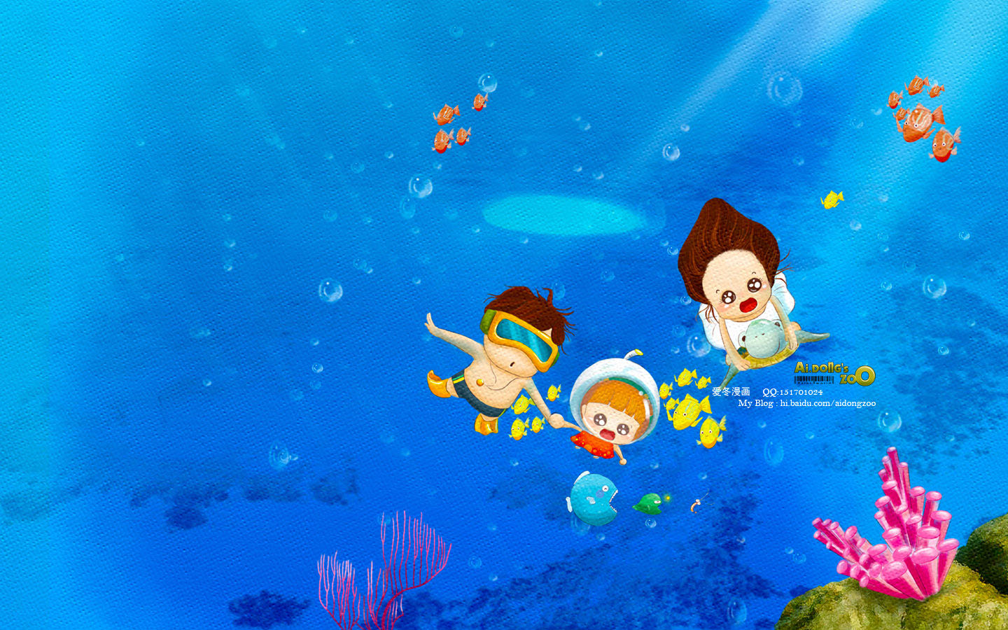 卡通海底桌面背景动漫免费电脑壁纸高清下载