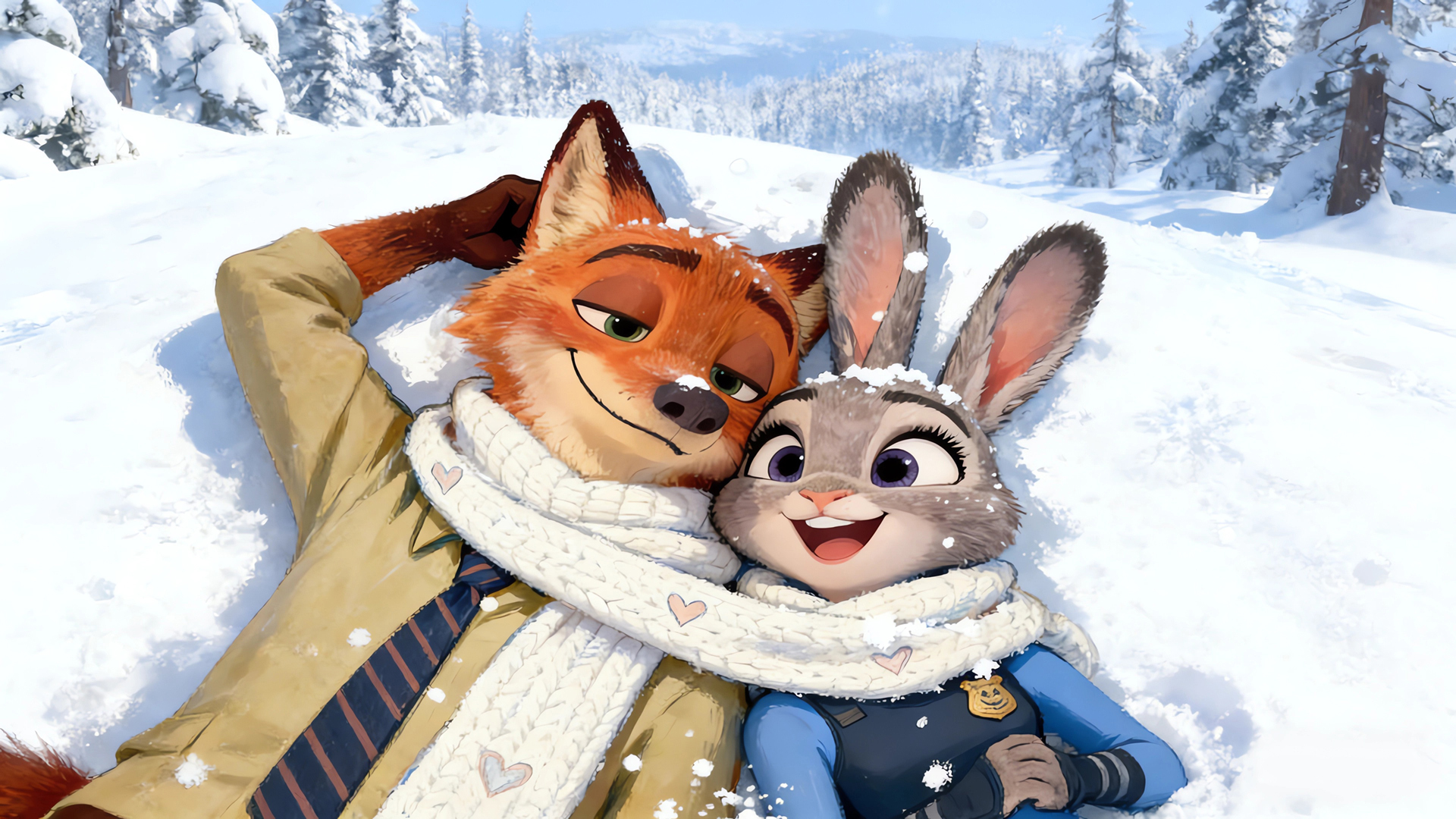 疯狂动物城2朱迪狐尼克雪地 围巾 雪景 浪漫桌面壁纸