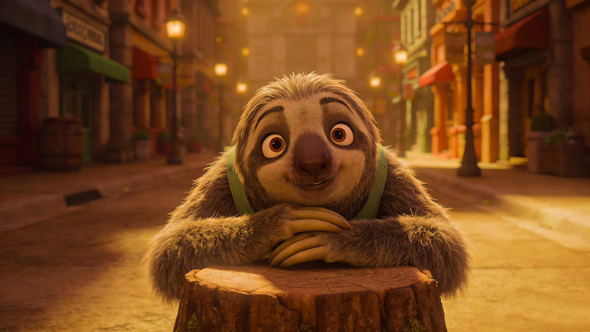 树懒闪电《疯狂动物城》街道树桩场景剧照免费电脑壁纸下载