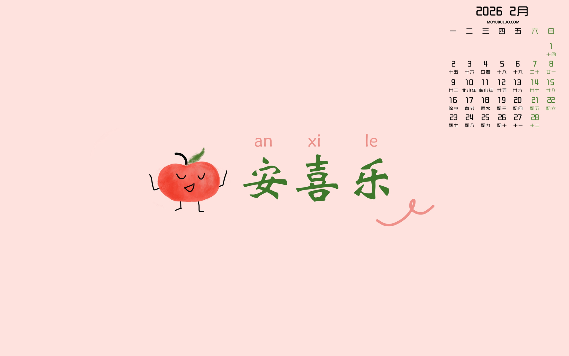 原创2026年2月事事顺心护眼日历电脑壁纸免费下载