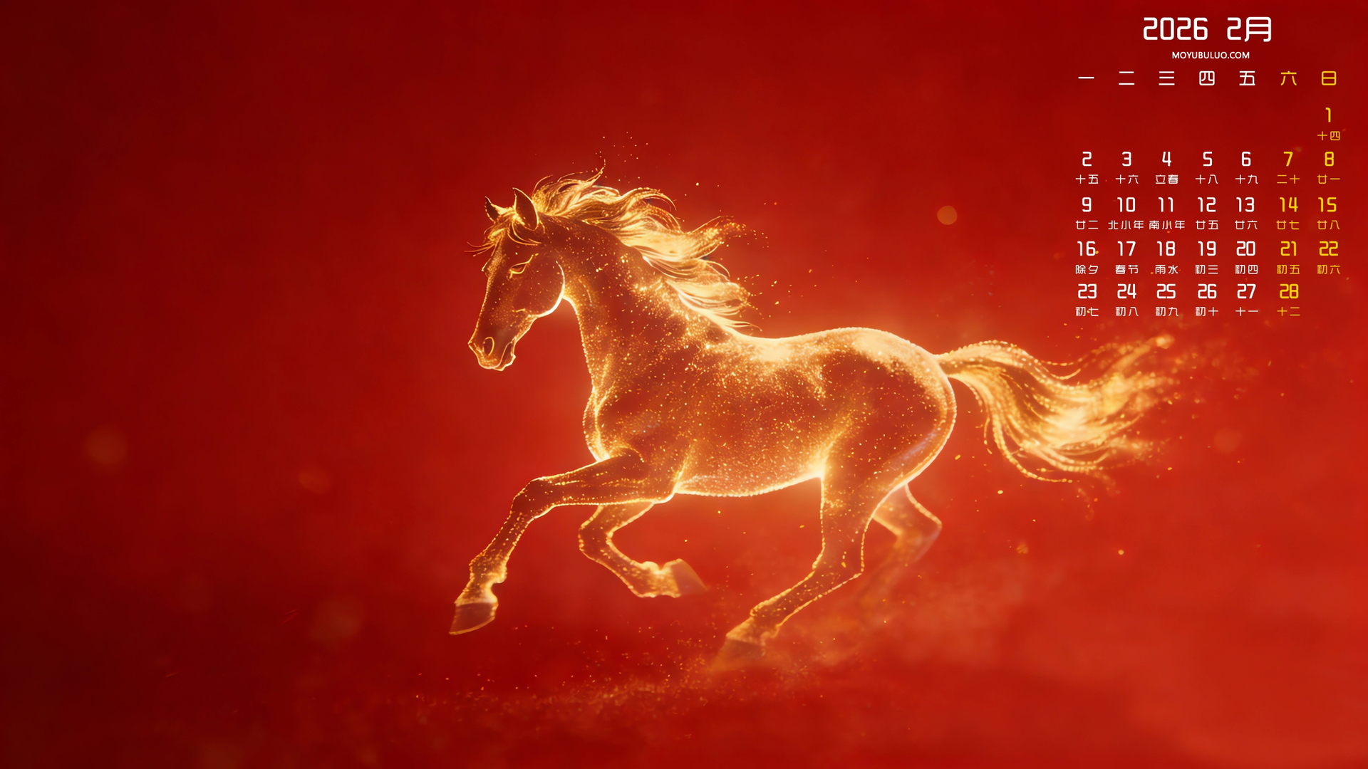 大吉大利2026年2月护眼日历免费电脑壁纸下载
