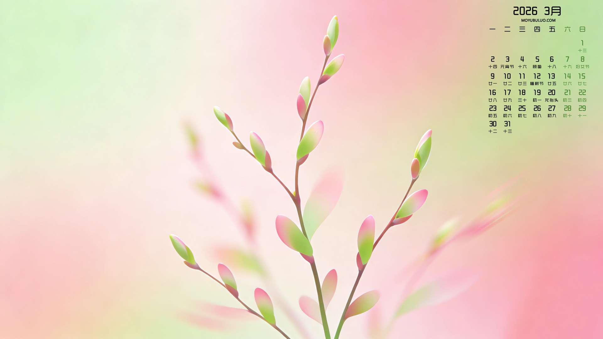 春天花朵2026年3月高清日历风景电脑壁纸免费下载