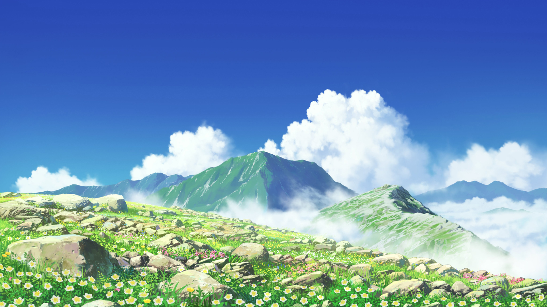 山谷之上巍峨山景唯美插画风景免费电脑壁纸下载