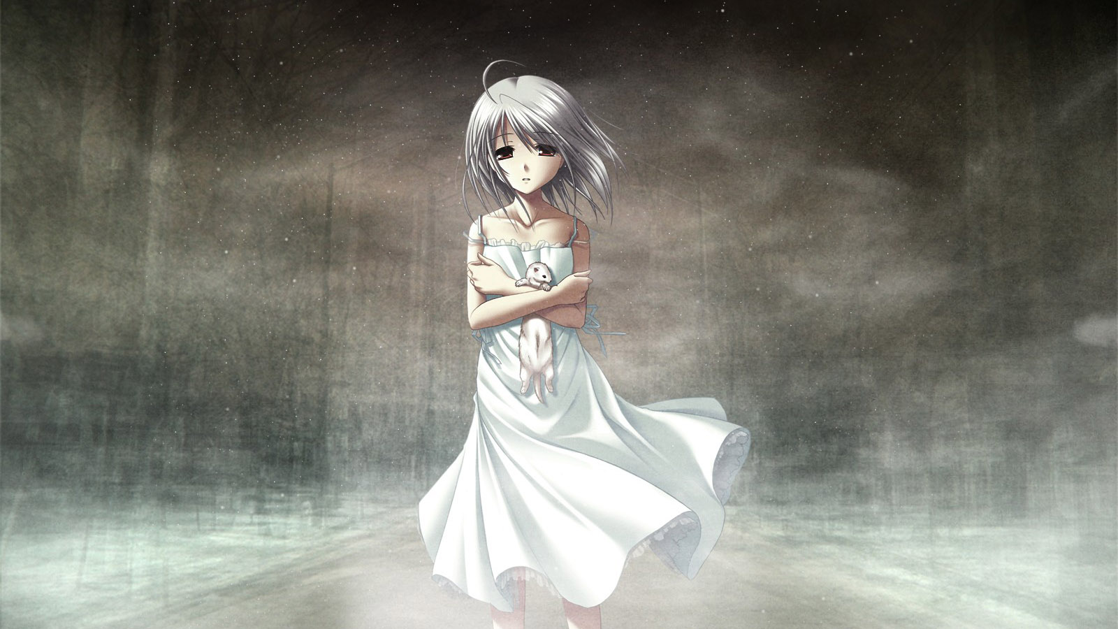 白色裙子女孩蒙眼眼罩动漫免费电脑壁纸下载