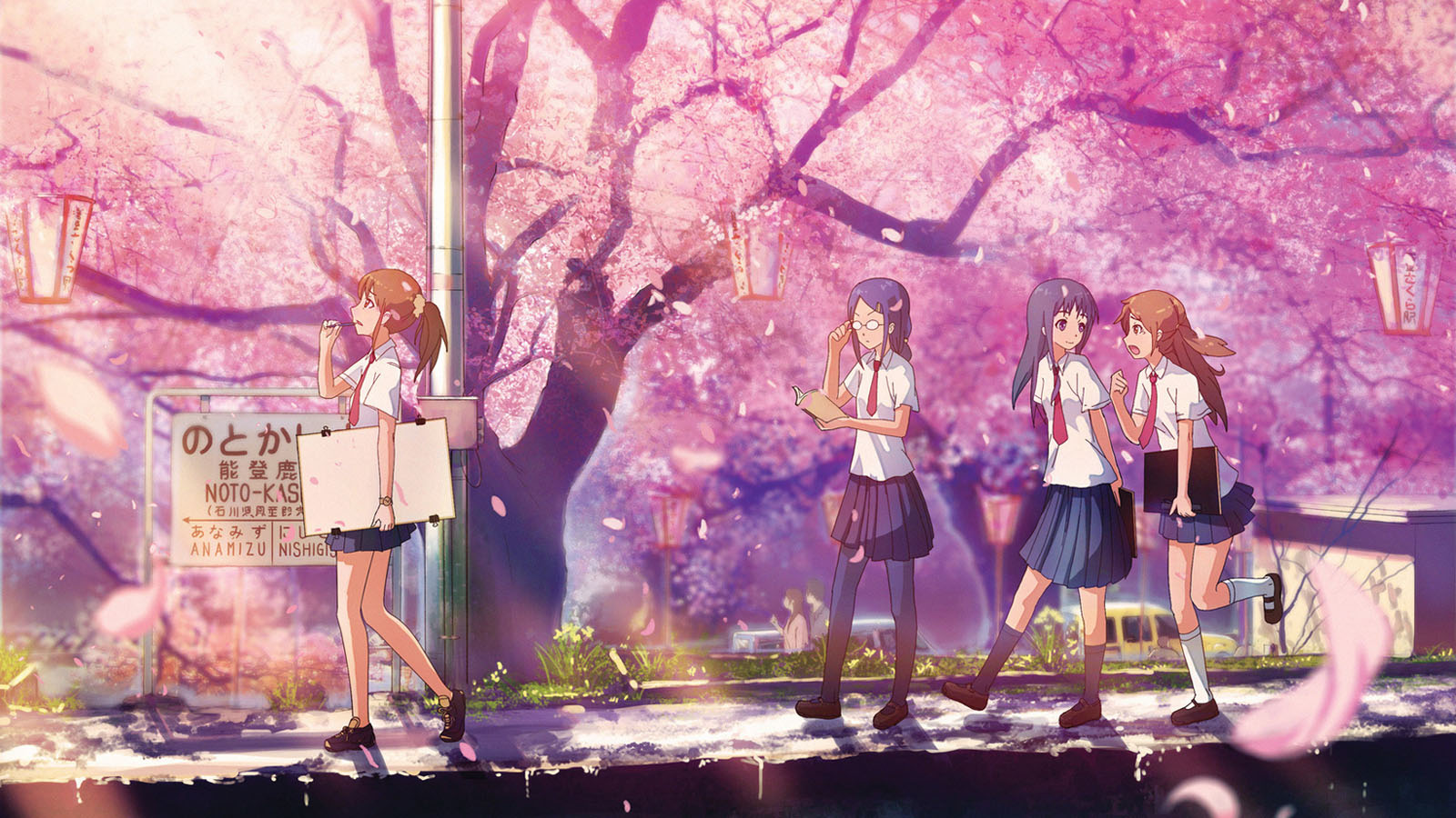 两个女孩穿和服裙子赏樱花动漫美少女免费电脑壁纸下载