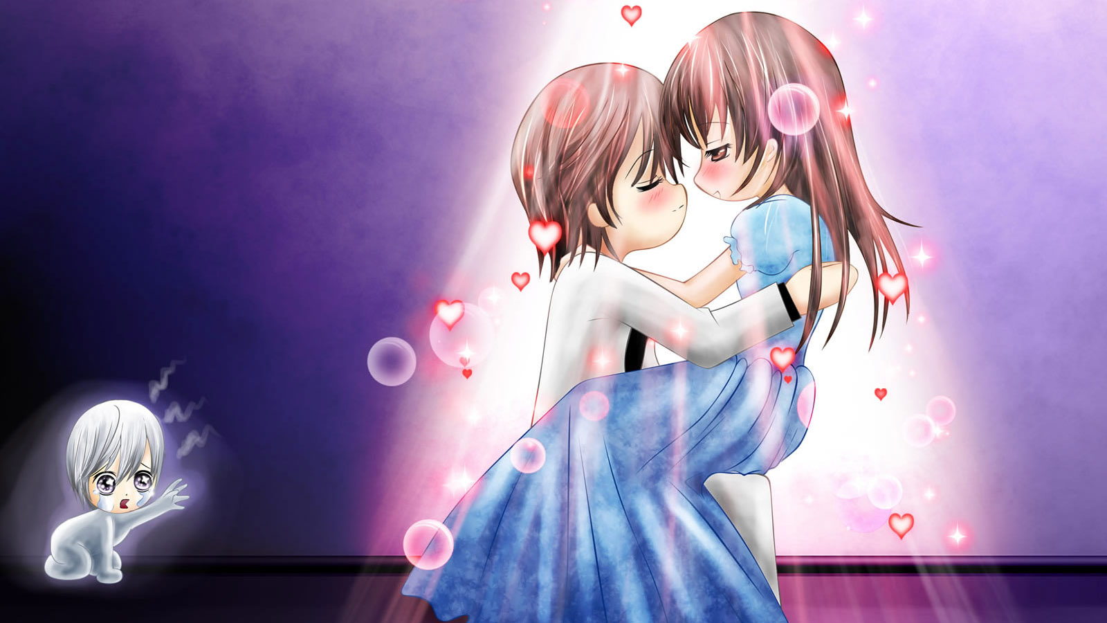 二人恋人浪漫鲜花主题绘画动漫免费电脑桌面壁纸下载