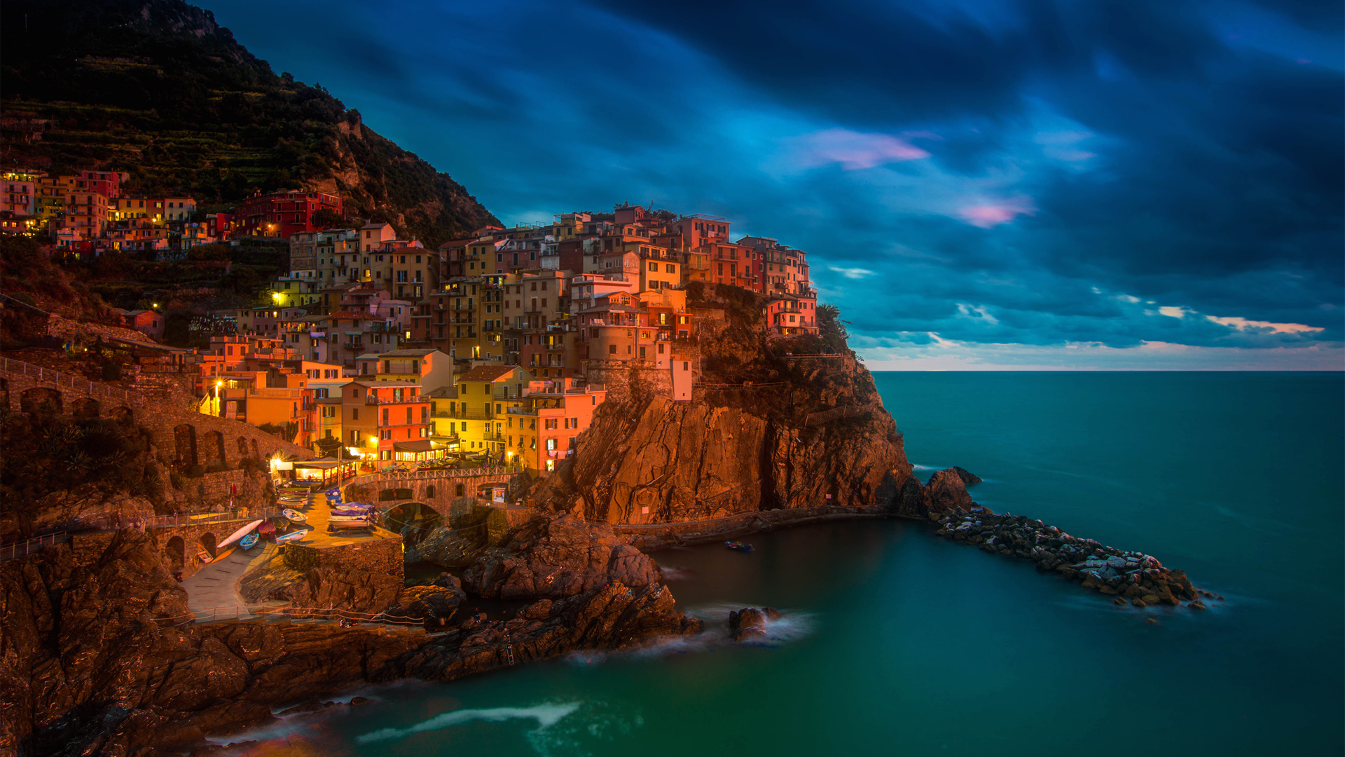 意大利五鱼村小镇海湾天空风景免费电脑壁纸下载