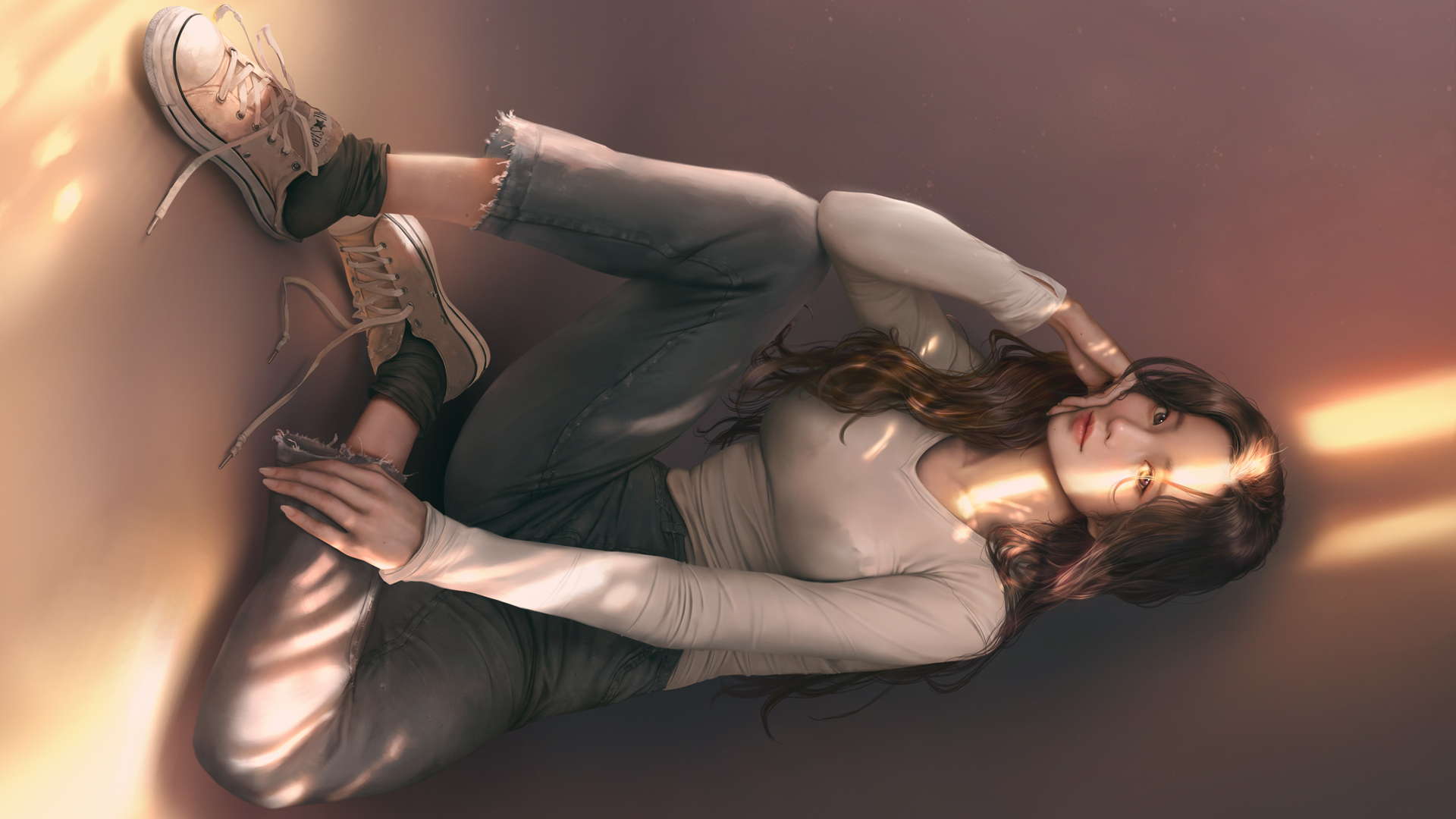 欧派美女 波浪长发 大腿 休闲装 布鞋 高清动漫美女壁纸