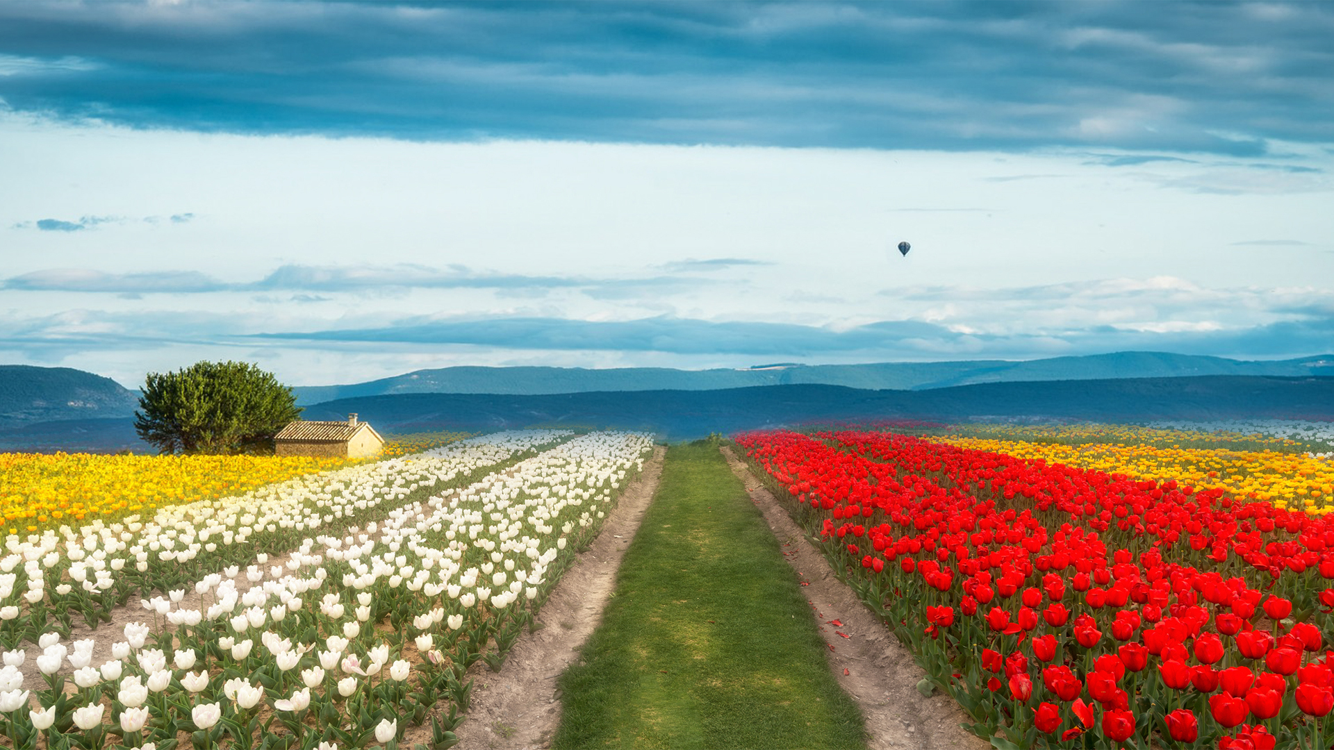 蔚蓝天空田野风光桌面壁纸 免费高清电脑壁纸下载