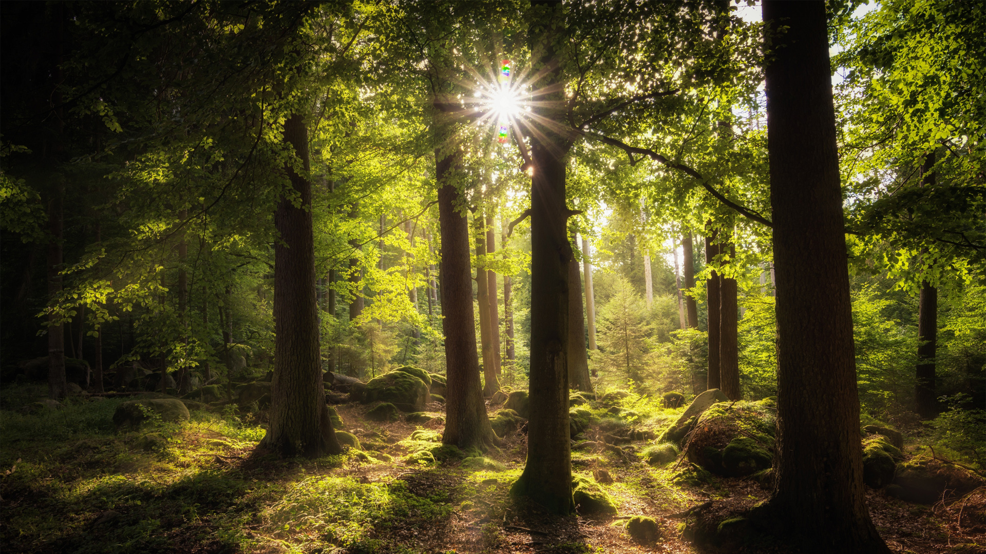 自然森林阳光草地树木风景免费电脑壁纸下载
