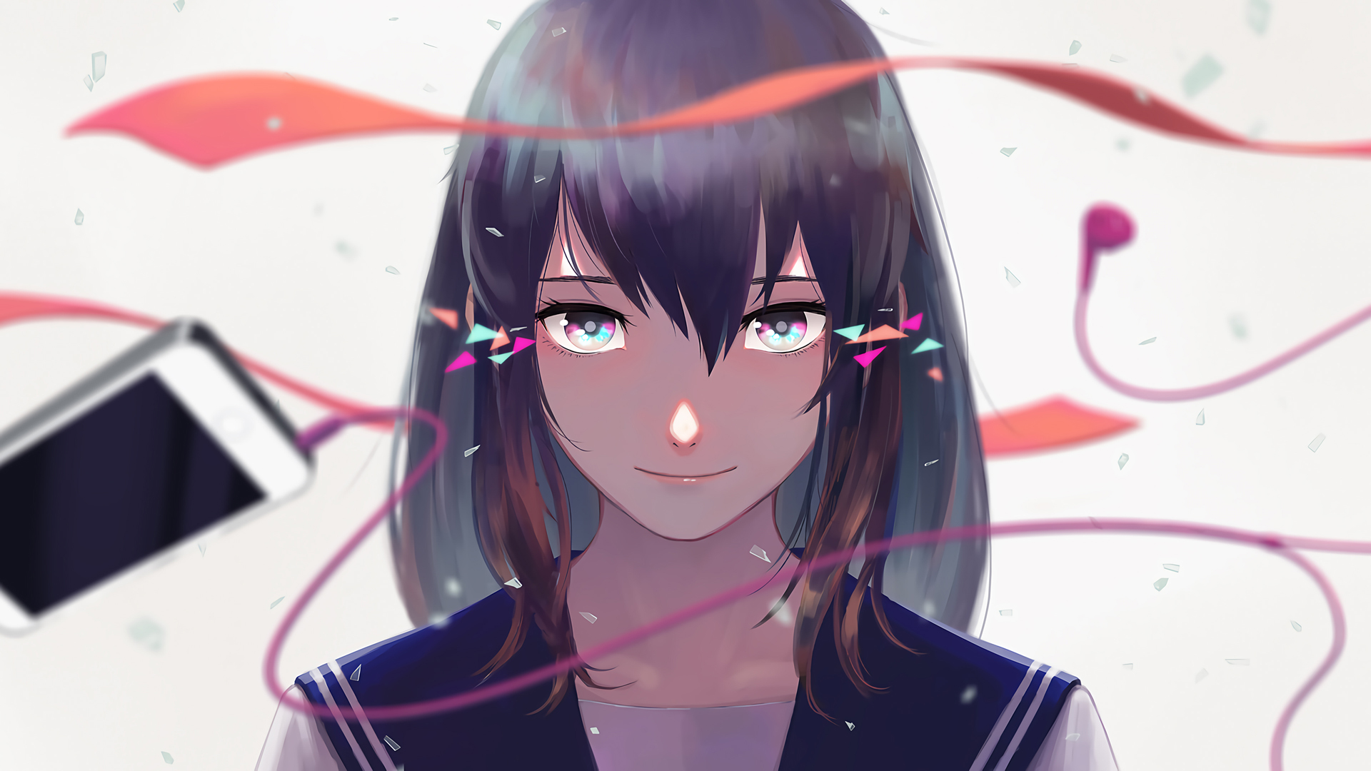 学生 校服制服 彩带 手机 大眼睛动漫人物壁纸