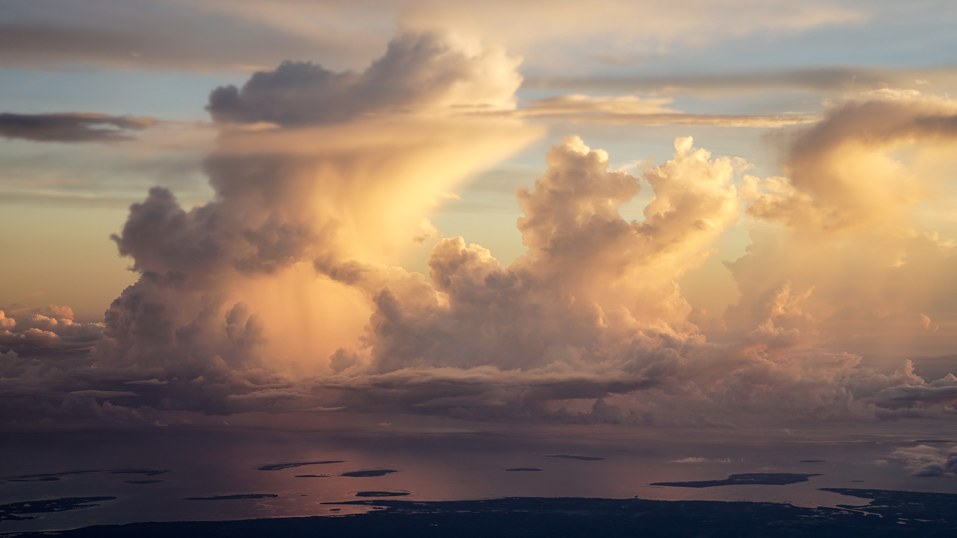 云彩夜晚海滨小城夜景免费电脑壁纸下载