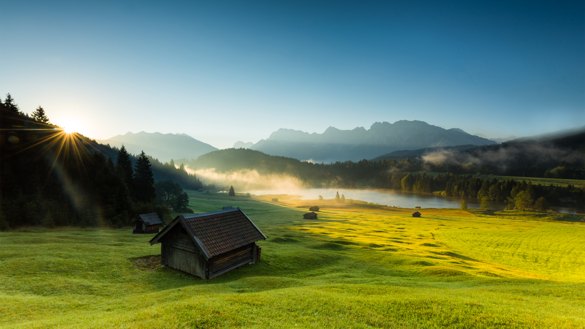 美丽乡村风景壁纸,山树林房子水稻田高清乡间免费电脑壁纸下载