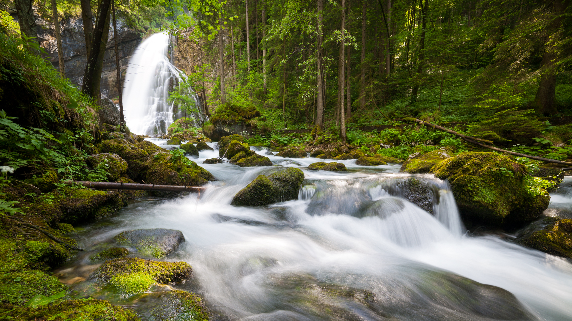 自然仙境风景壁纸,泉水瀑布树木天空精美电脑桌面免费下载