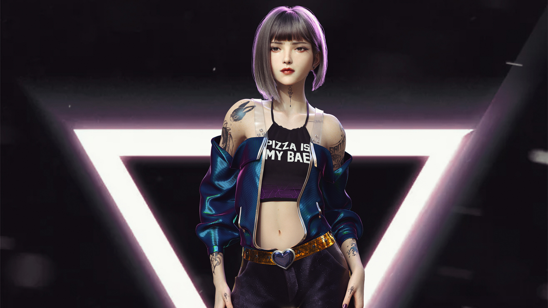 个性短发美女纹身露肚脐时尚装高清动漫电脑壁纸免费下载