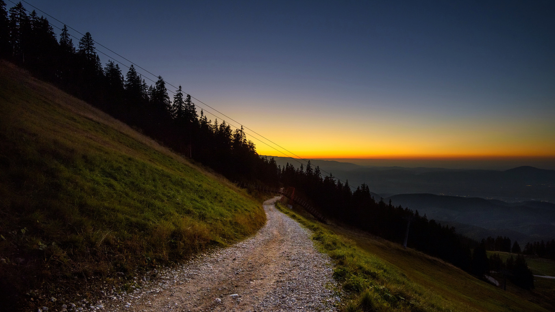 早晨阳光下的自然森林绿色植物道路风景电脑壁纸免费下载