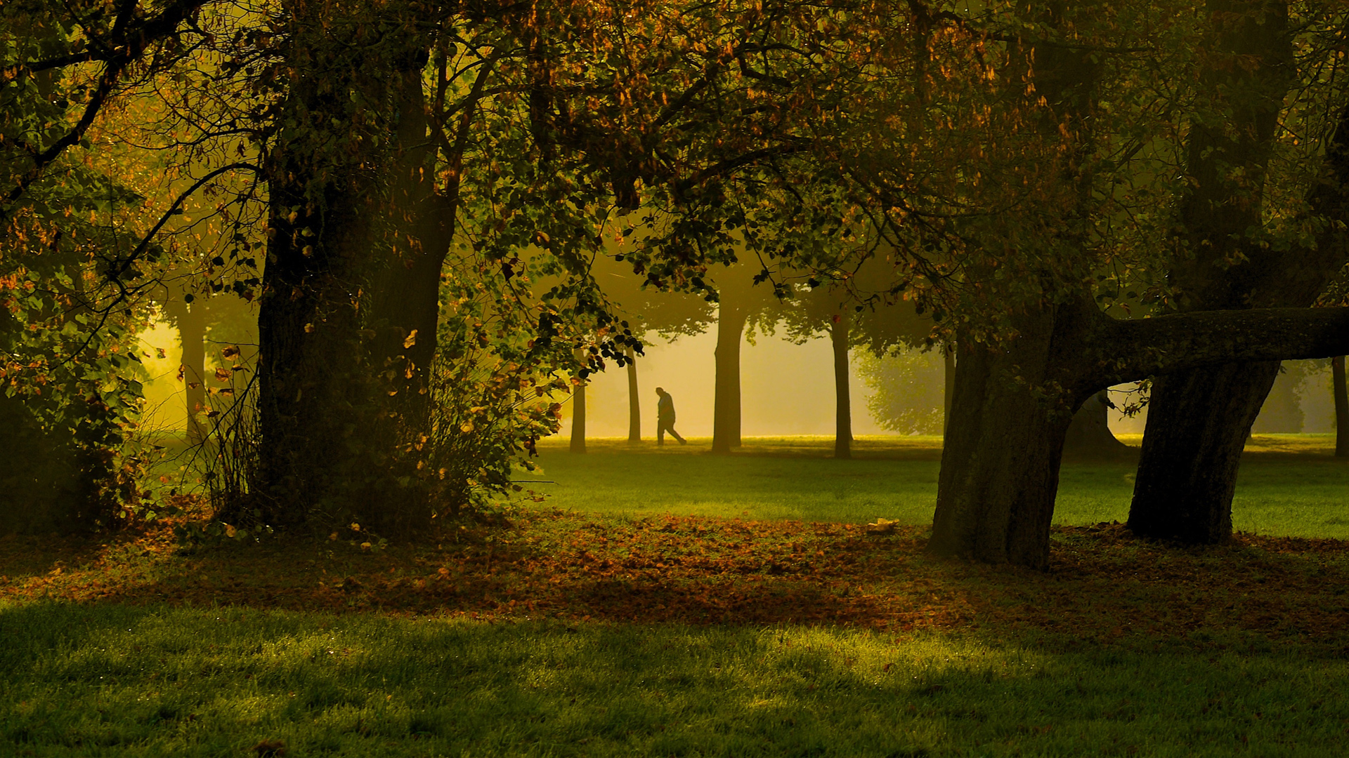 秋天自然风景免费电脑壁纸,山树木屋与太阳的绝美桌面