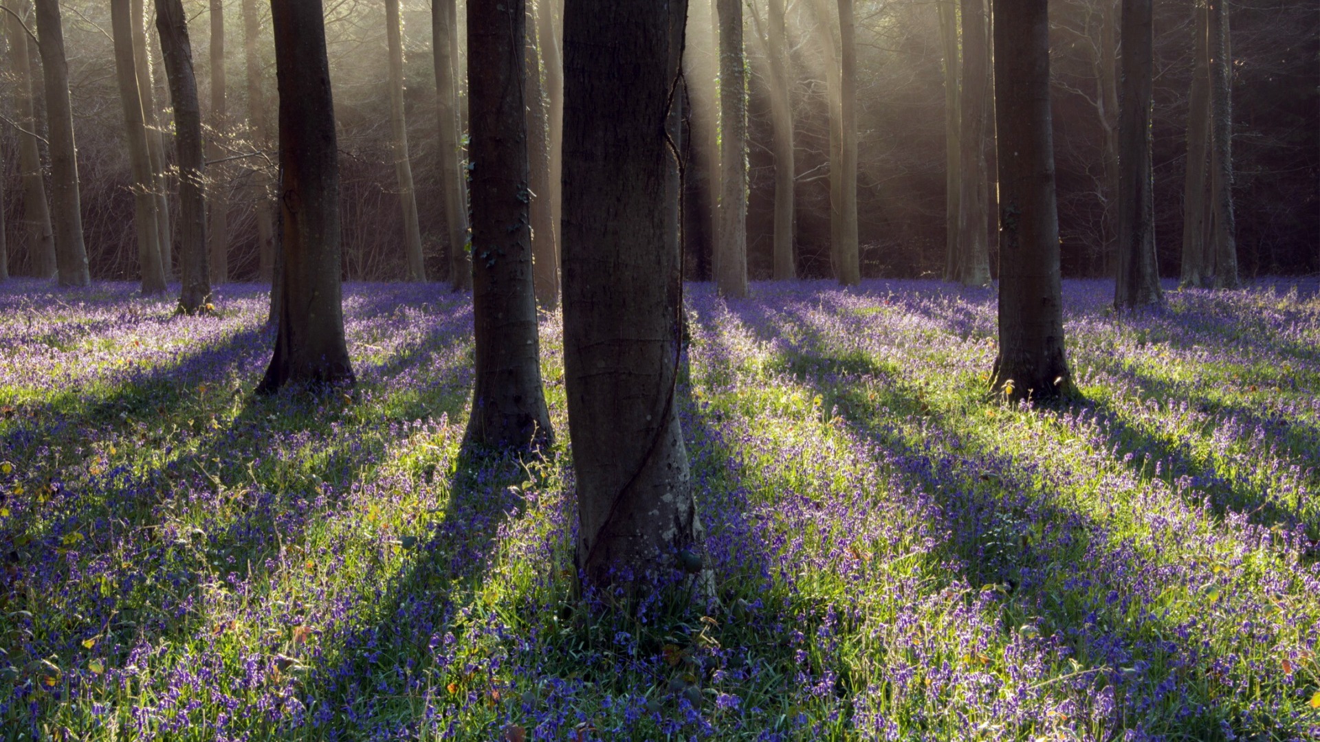 道路绿荫树林绿色草地自然风景免费电脑壁纸下载