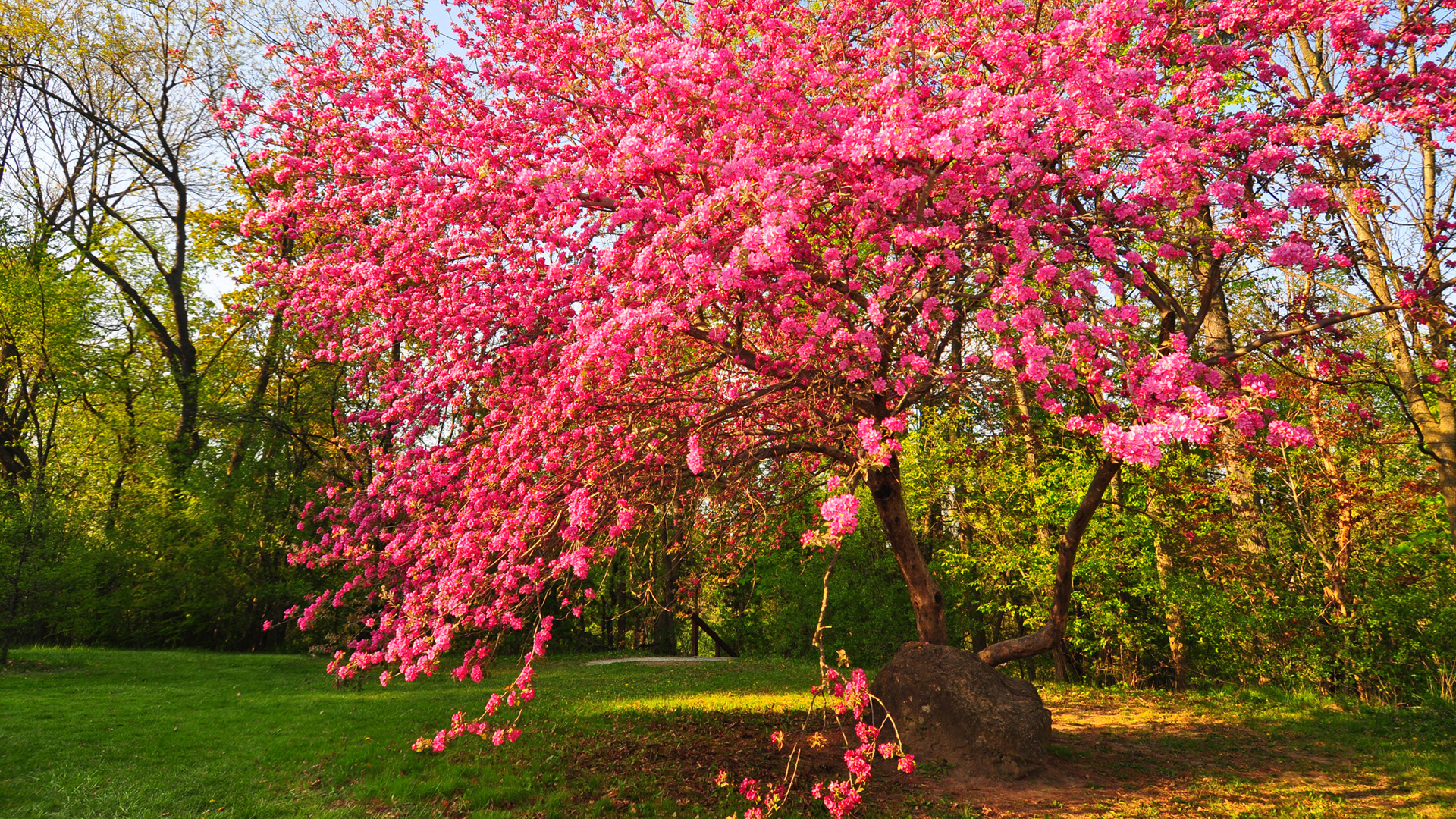 自然公园路树林阳光落叶构成的美丽自然风景免费电脑壁纸下载