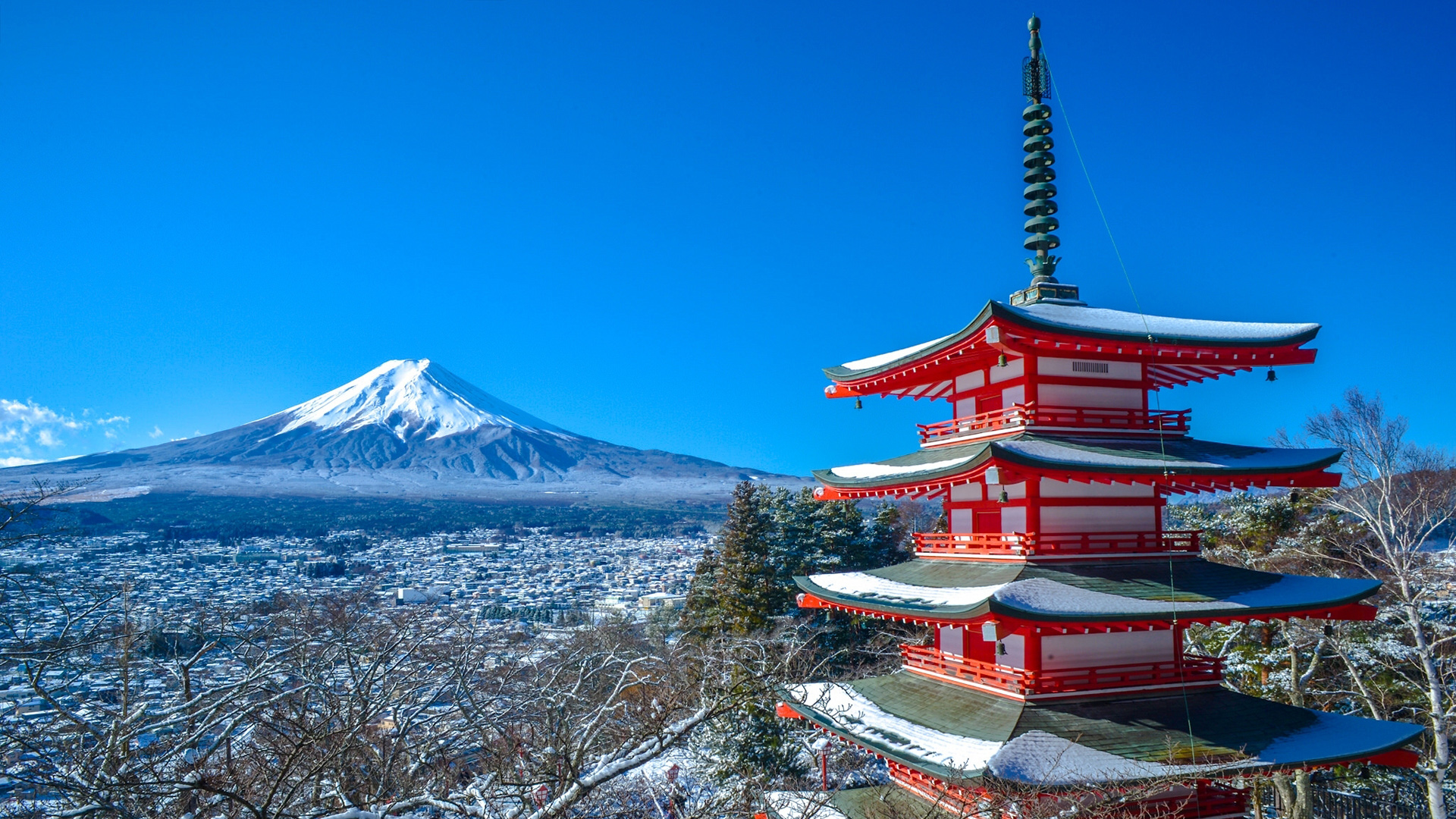 美丽冬季夜晚雪景,雪山湖水房子灯光电脑免费桌面壁纸下载