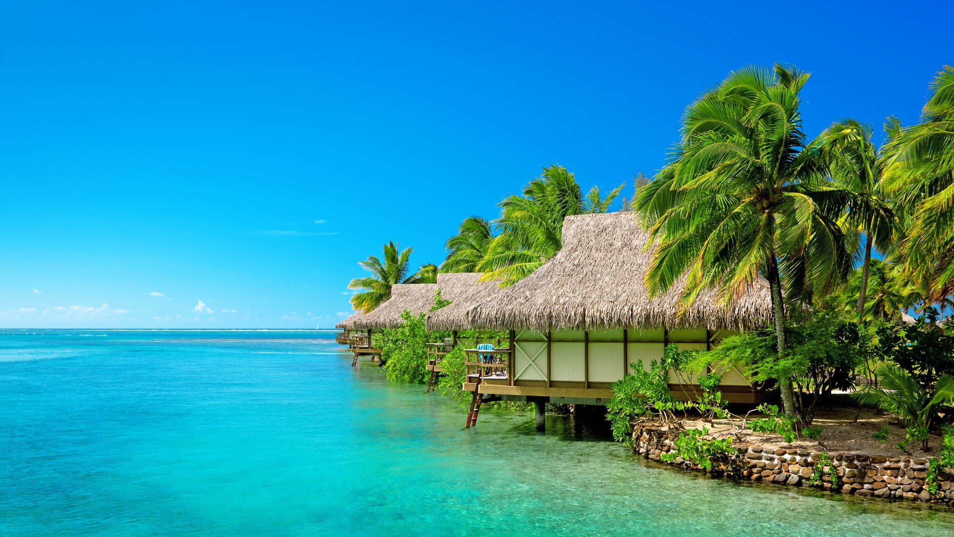 热带海洋沙滩小亭水果海景风景桌面壁纸免费下载
