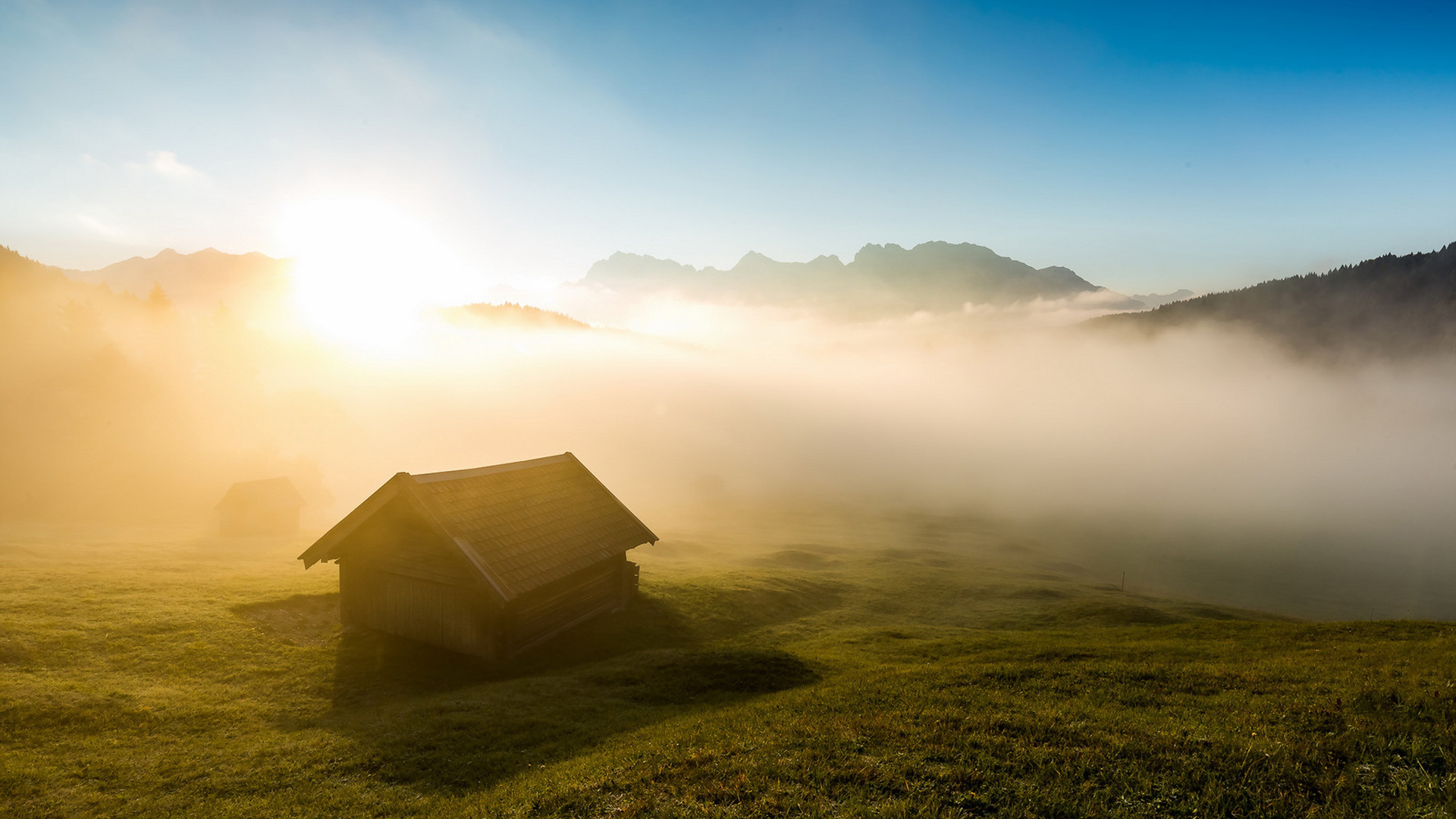 秋晨雾漫托斯卡纳,草地田野绝美风景电脑壁纸免费下载