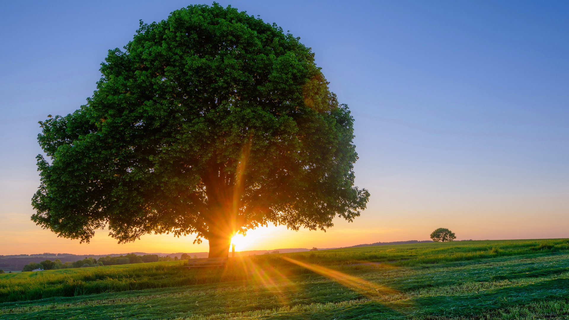 天空夕阳山雪树风景免费电脑壁纸高清下载