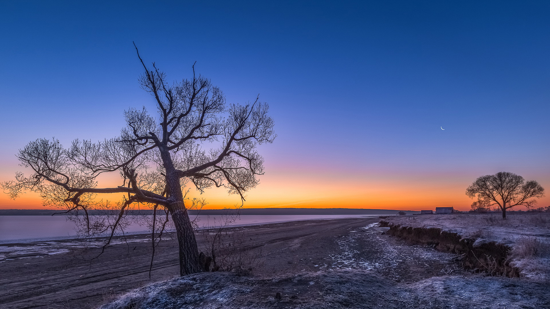 山区松林湖泊城市黄昏风景免费电脑壁纸下载