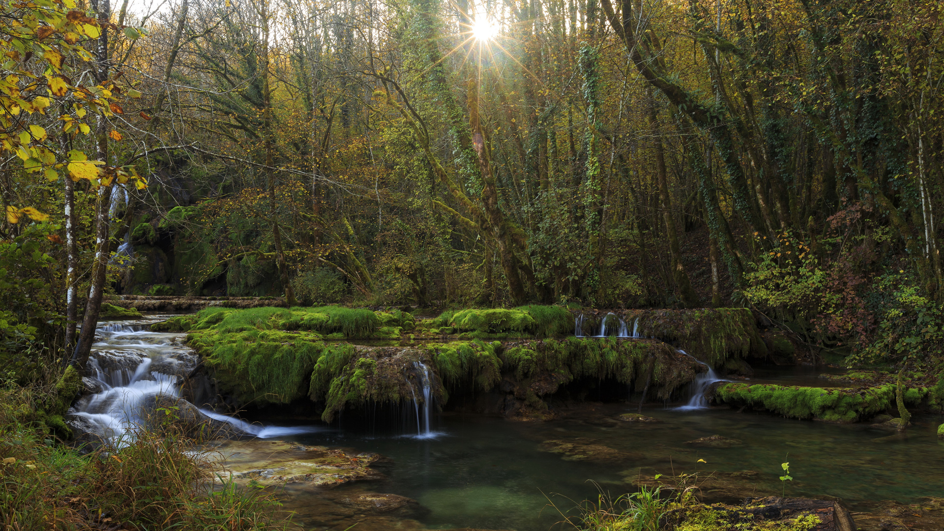 小山树木绿色河水大自然风景免费电脑壁纸下载