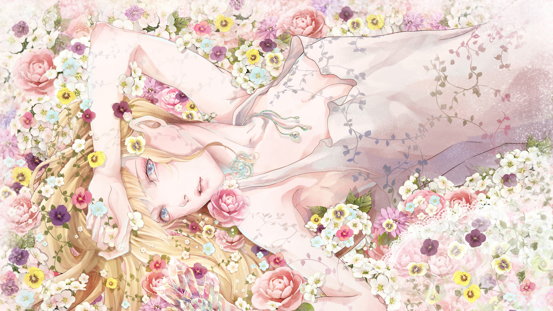 花边,鲜花,女孩,楪祈,罪恶王冠桌面壁纸