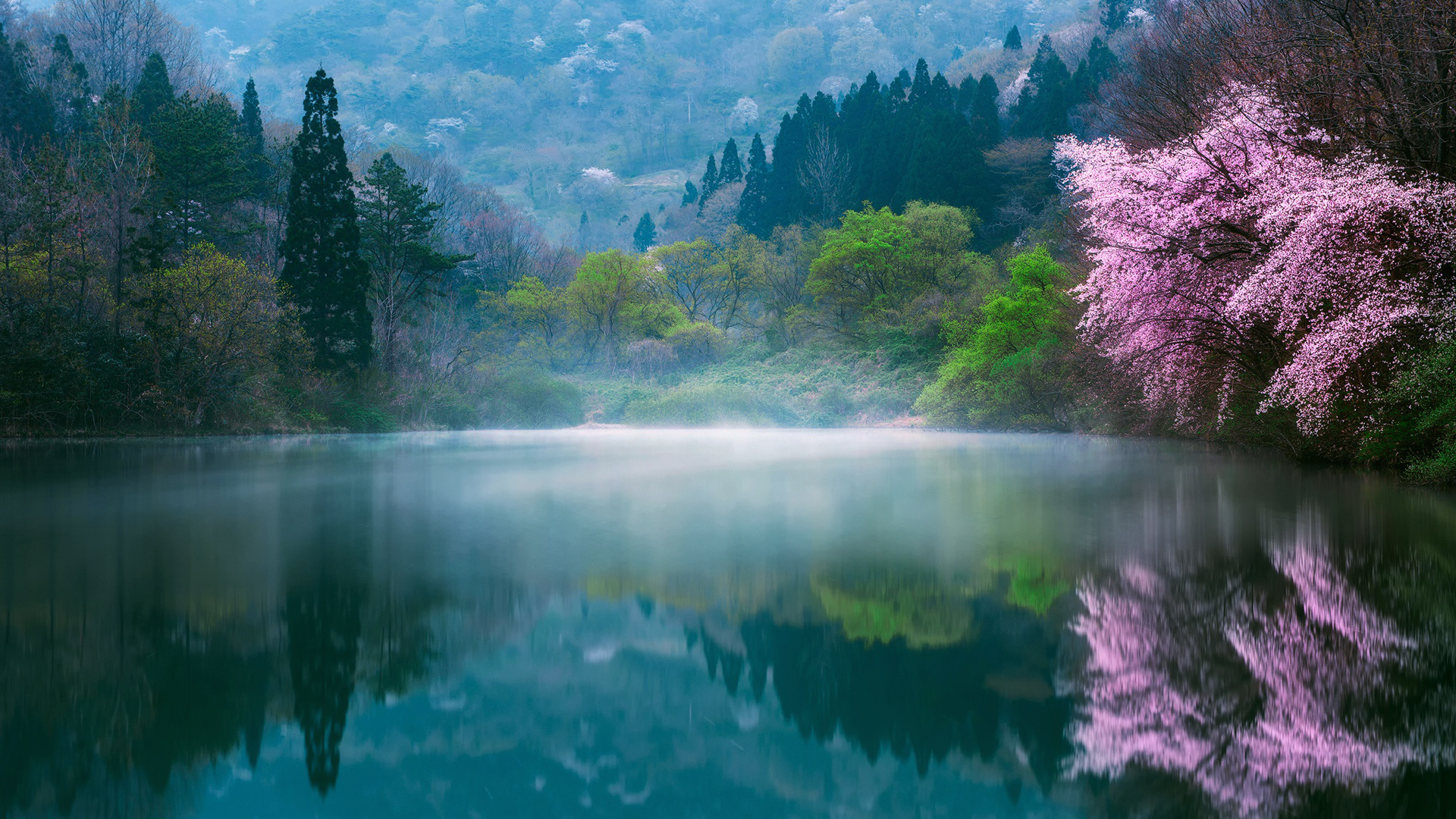 秋天唯美意境风景壁纸,树狗落叶高山电脑免费壁纸下载