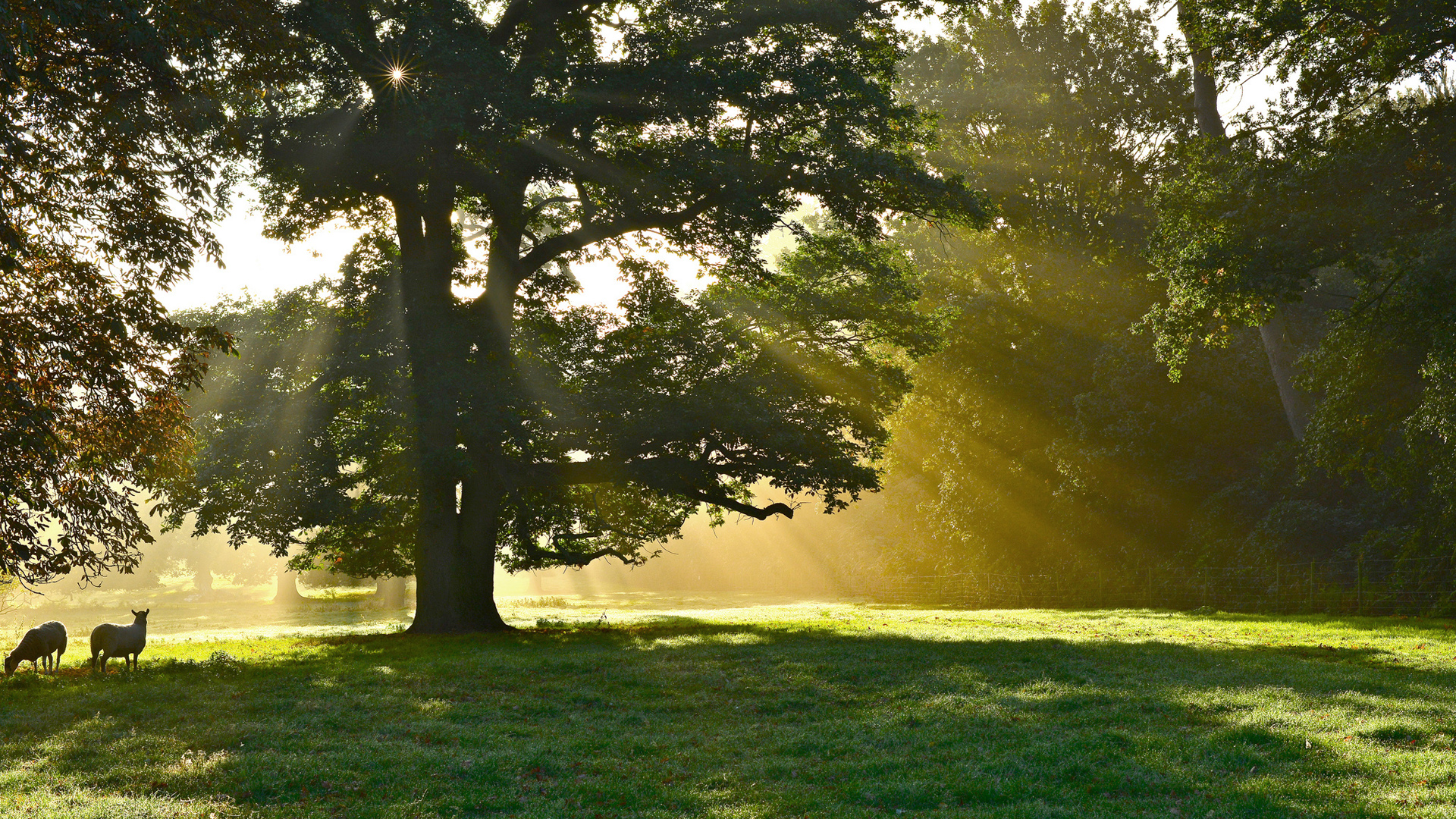 高清美丽风景壁纸免费下载,房子场地道路农田树木山全景电脑壁纸