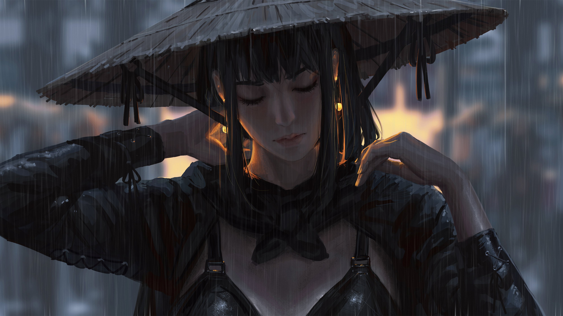 雨夜蒙眼黑色旗袍美女持伞光影动漫电脑壁纸免费下载
