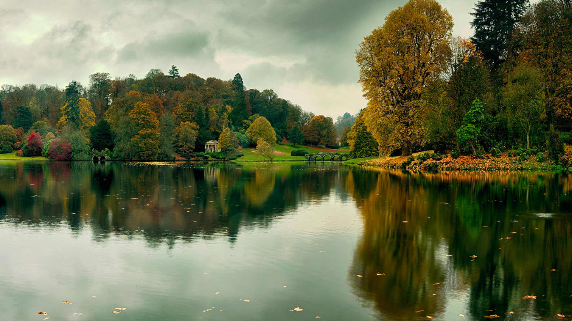 超高清秋天森林自然风景壁纸 树叶河景免费电脑桌面下载