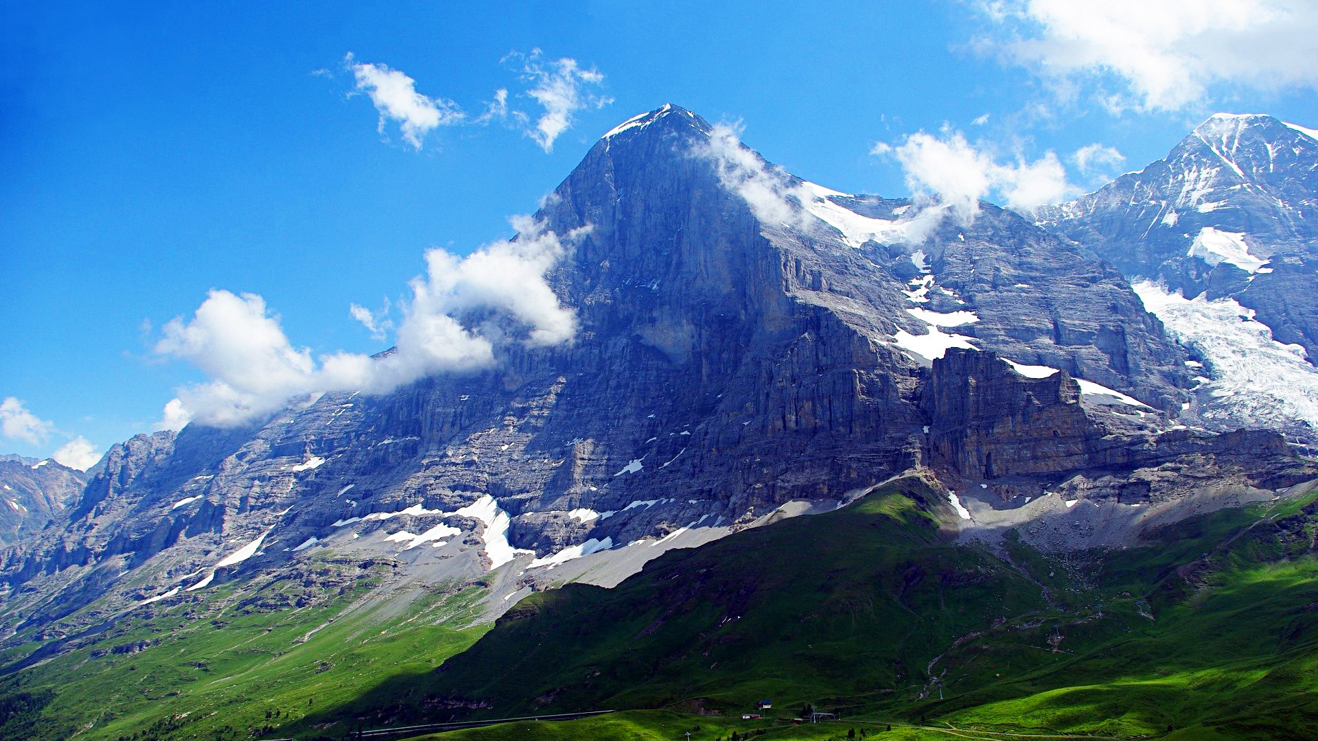 瑞士伯尔尼小镇城市风景,河流桥建筑天空山脉电脑壁纸免费下载
