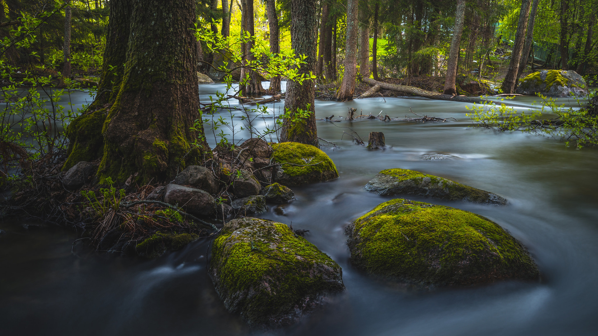 秋天森林河流桥梁太阳风景免费电脑壁纸高清下载