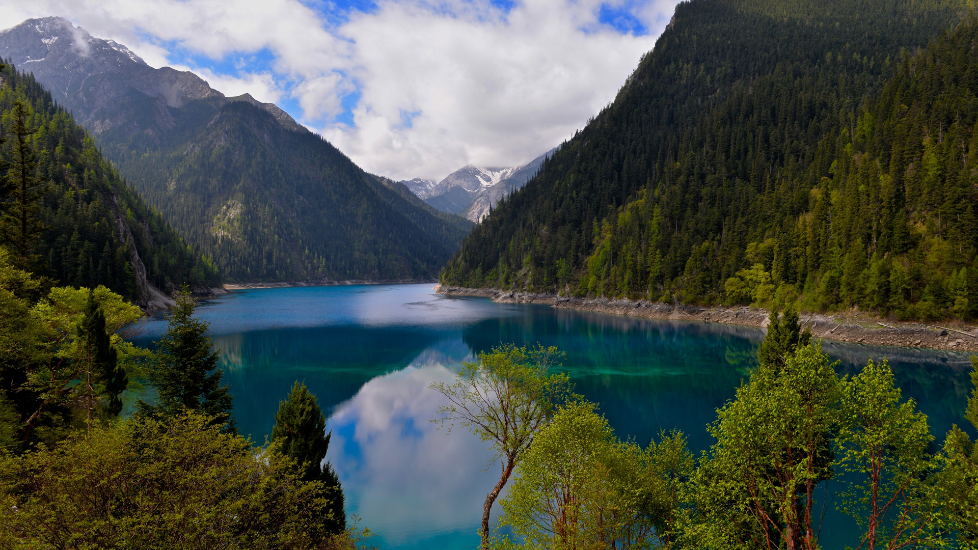 山湖水树林木屋船自然风景免费电脑壁纸下载