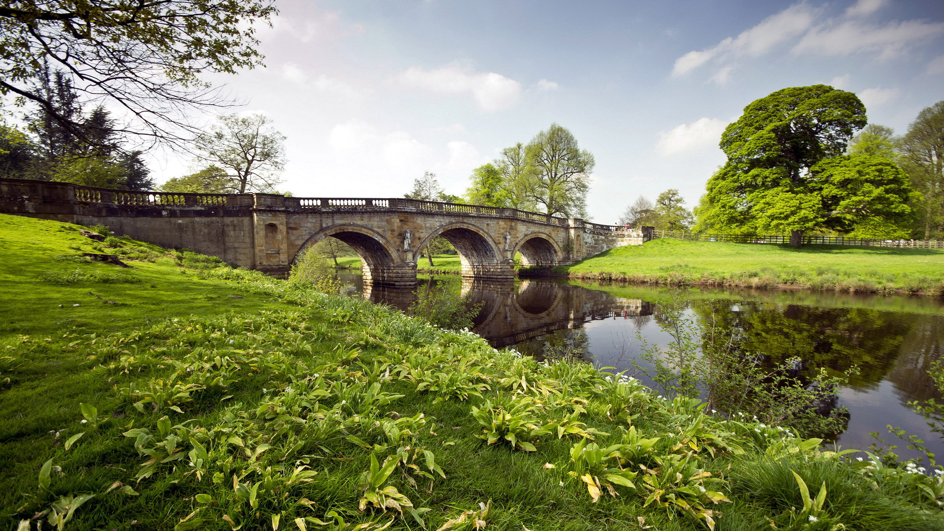 春天树木河流山石头构成的美丽风景电脑壁纸免费下载